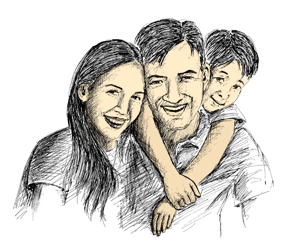 Famille — Élégance dorée : Une famille souriante se retrouve dans un grand jardin fleuri. Tons chaleureux, mouvements subtils. Fidélité à la photo d’origine.